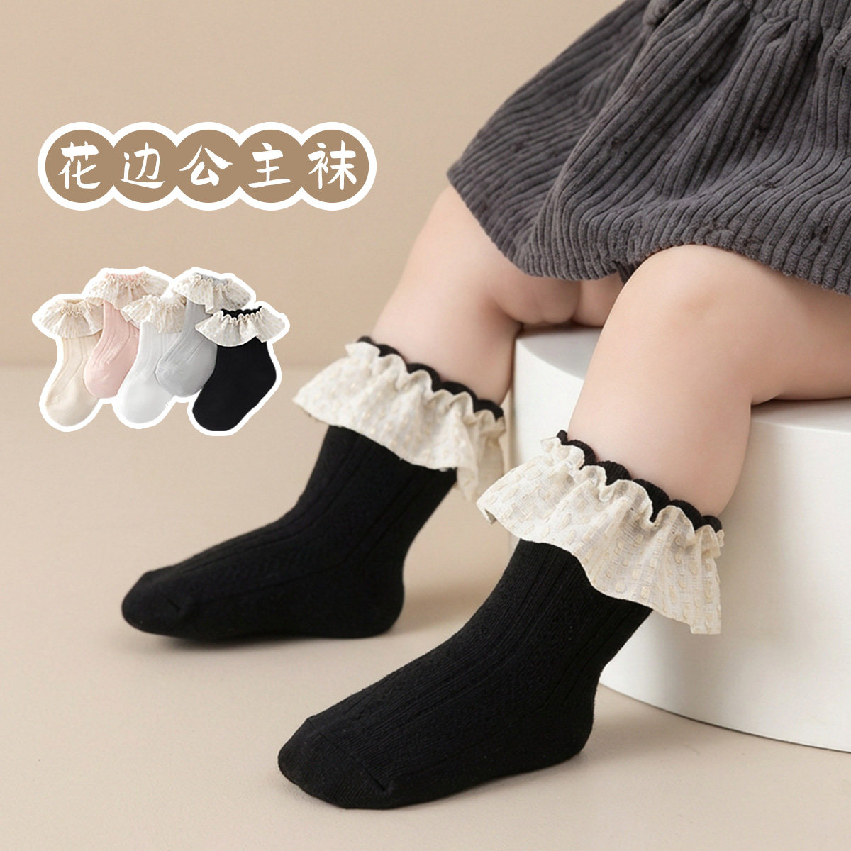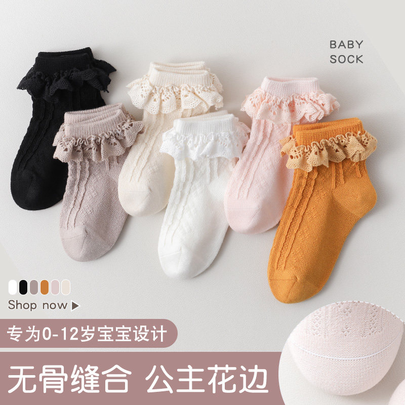 女宝宝花边袜子秋冬薄款婴儿童复古秋冬季无骨柔软纯棉女童公主袜