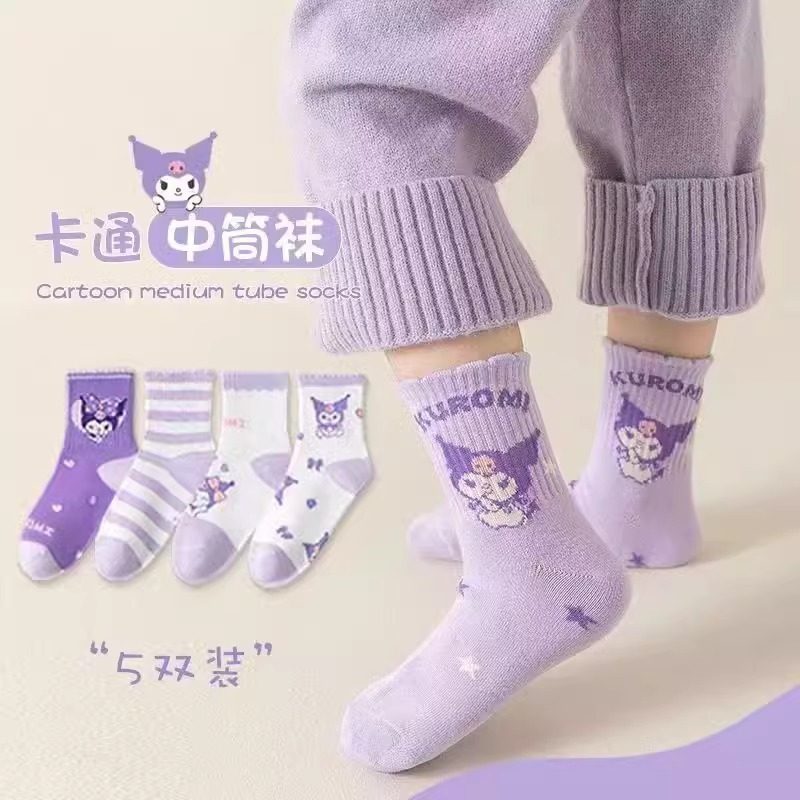秋冬儿童袜子女童秋冬季卡通中筒袜女孩库洛米童袜女可爱宝宝花边