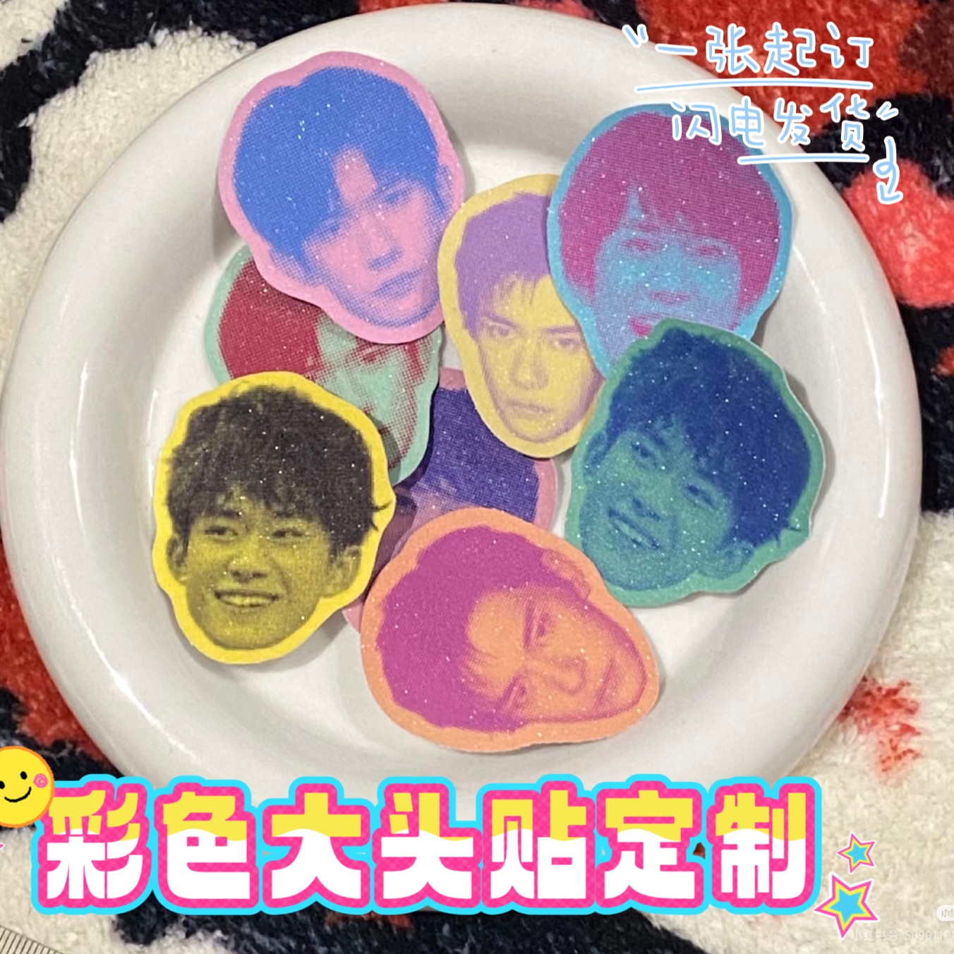 彩色大头贴定制卡通异形明星周边卡通闪砂不干胶照片贴纸来图定制