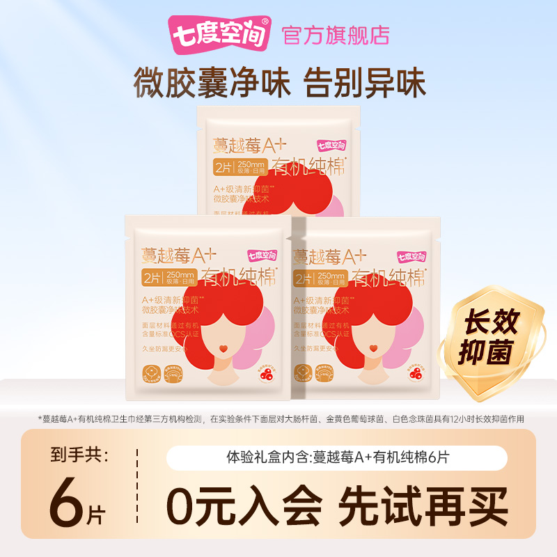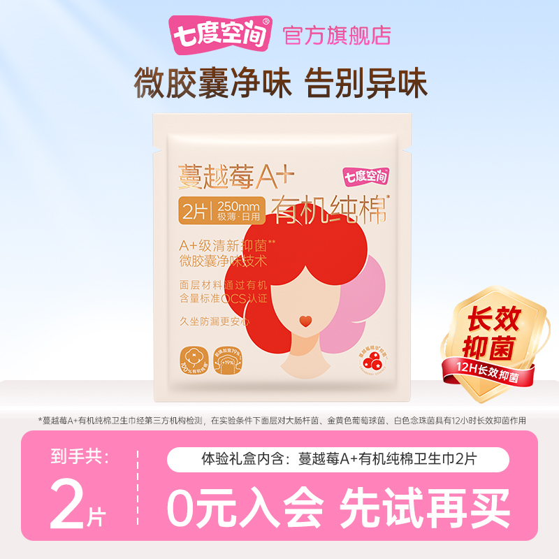 【天猫U先】七度空间官方旗舰店蔓越莓A+有机纯棉卫生巾2日用片装