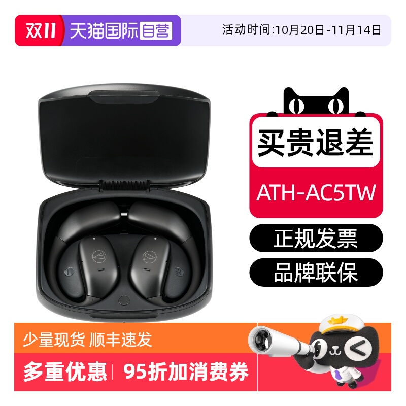 【自营】Audio-Technica/铁三角ATH-AC5TW 运动开放蓝牙无线耳机
