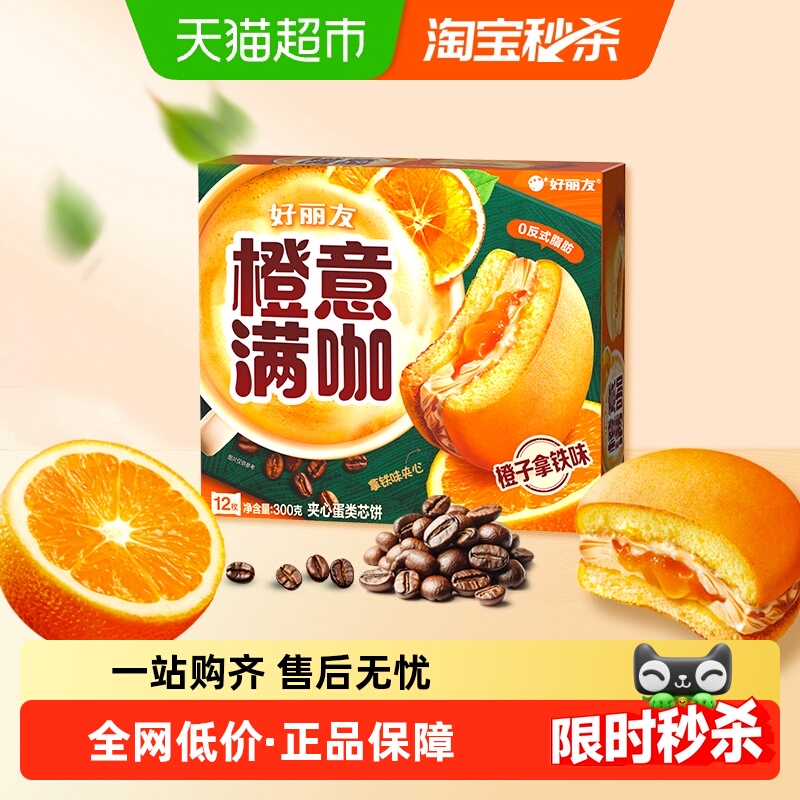 好丽友橙意满咖派12枚季节限定休闲零食糕点早餐早点下午茶300g