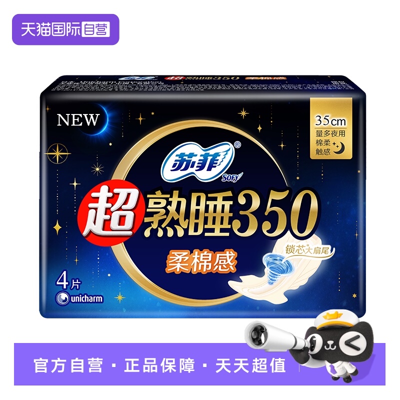 【自营】苏菲卫生巾超熟睡350mm夜用5片柔棉感/裸感肌任选姨妈巾