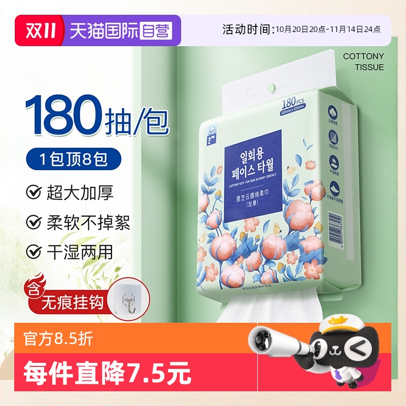 【自营】恩芝悬挂式绵柔巾洗脸巾一次性擦脸洗面180抽洁面巾加厚
