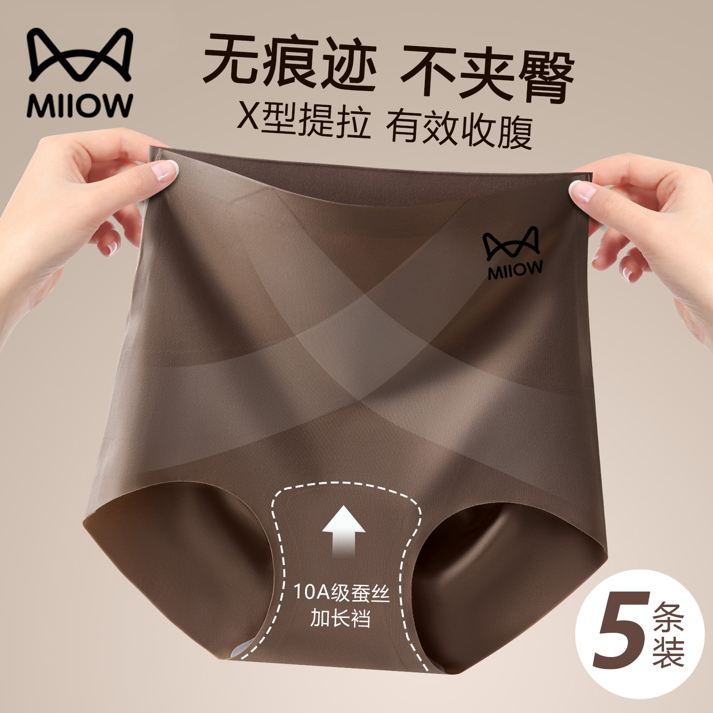 猫人高腰提臀收腹女士内裤新款桑蚕丝抗菌裆无痕大码女生三角短裤