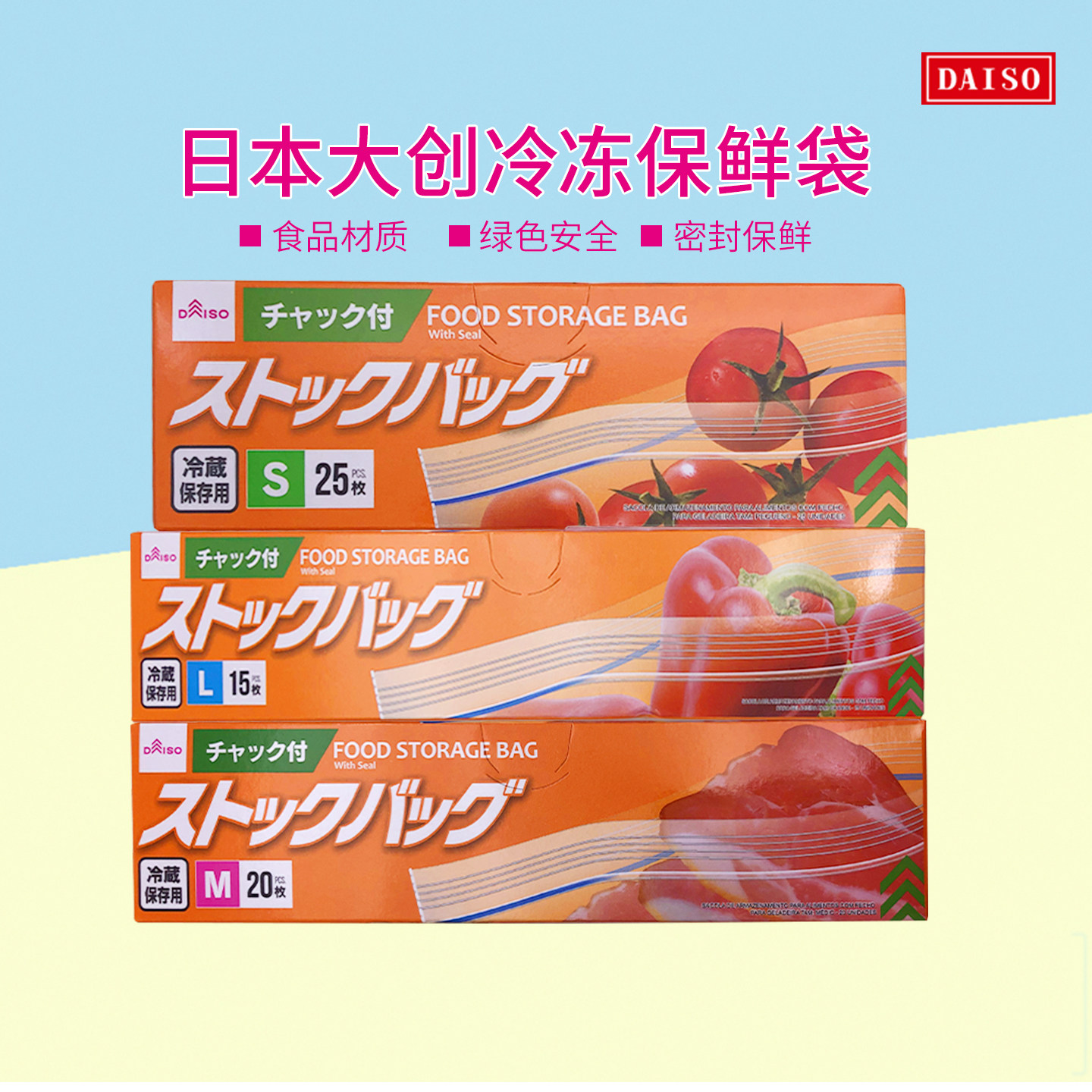 日本大创DAISO冷藏室密封保鲜袋食品密封储存收纳厨房用20枚25枚