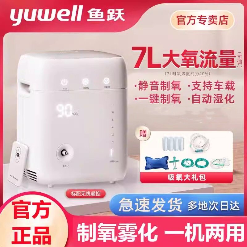 鱼跃制氧机家用吸氧机老人孕妇便携式小型氧气机7L制氧雾化一体机