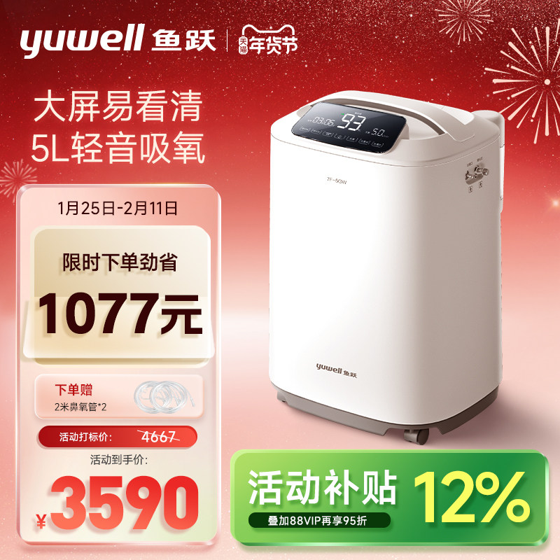 鱼跃制氧机家用吸氧机老人5L便携小型氧气机官方旗舰店孕妇吸氧升