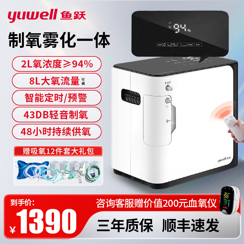 鱼跃制氧机家用吸氧机老人家庭孕妇小型氧气机8升带雾化自动湿化