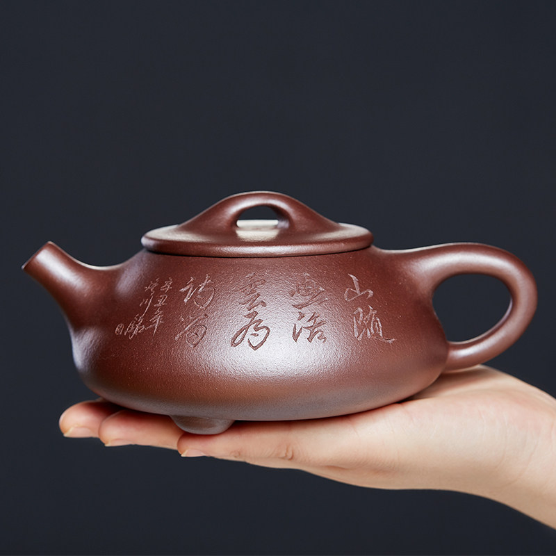 功夫茶具紫砂壶全纯手工石瓢壶家用茶壶泡茶壶宜兴朱泥紫砂花茶壶