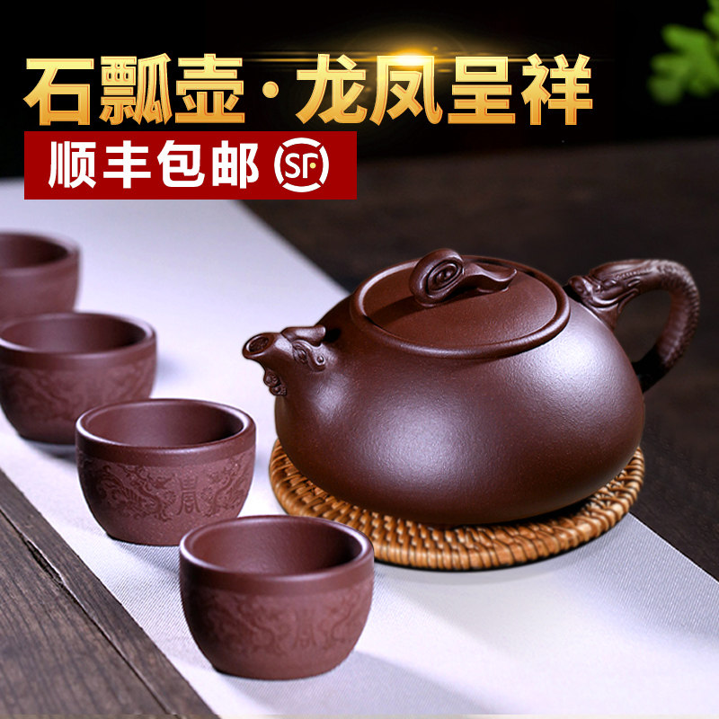 宜兴紫砂壶纯全手工名家用功夫茶具国工原矿老紫泥泡茶壶龙凤石瓢