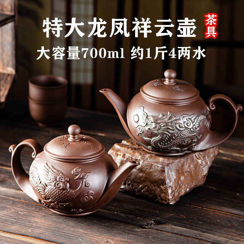 朱泥紫砂壶家用大容量过滤泡茶壶单壶陶瓷大号龙凤祥云壶功夫茶具