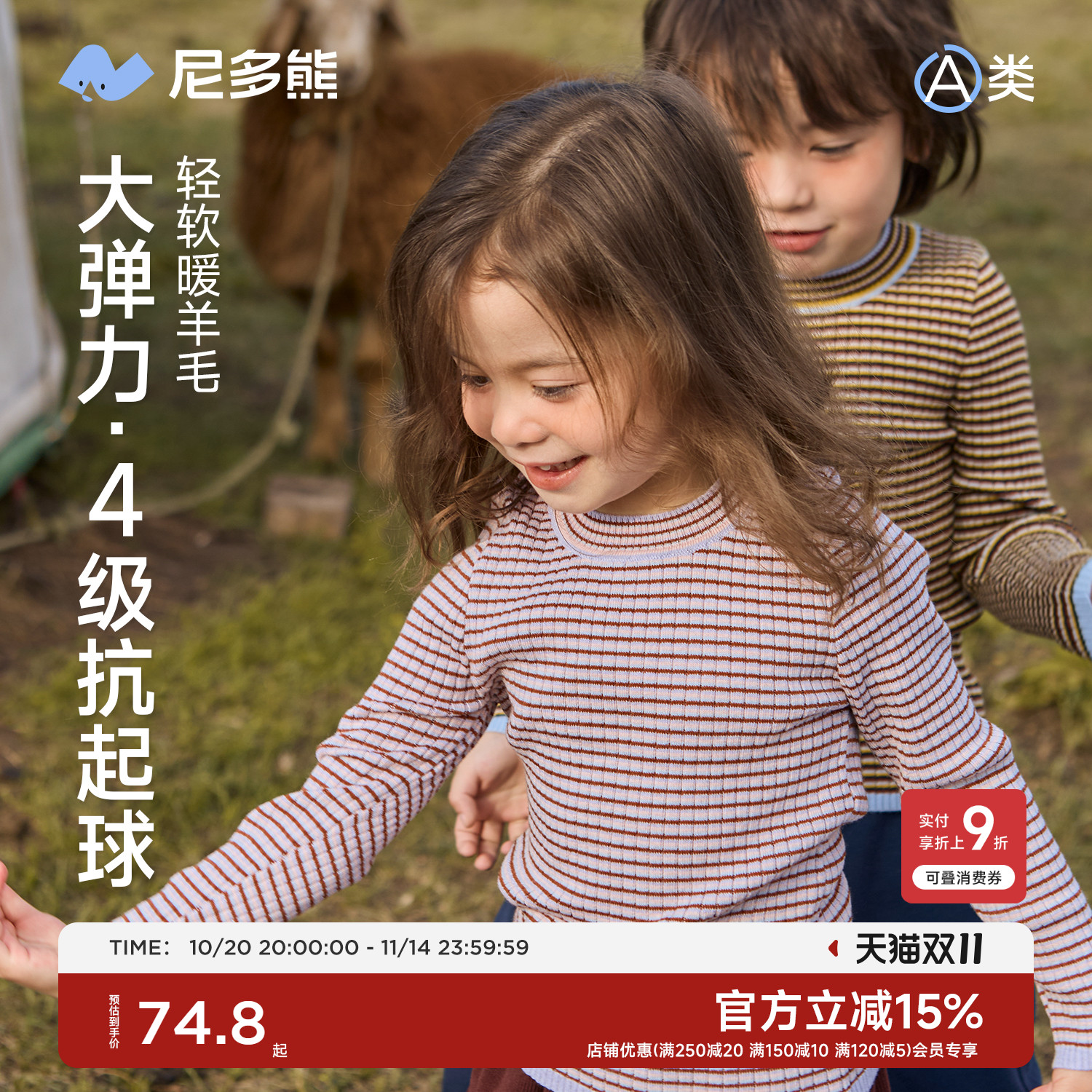 【打底衫绵羊毛】尼多熊25男女童秋冬针织毛衣儿童条纹宝宝内搭潮