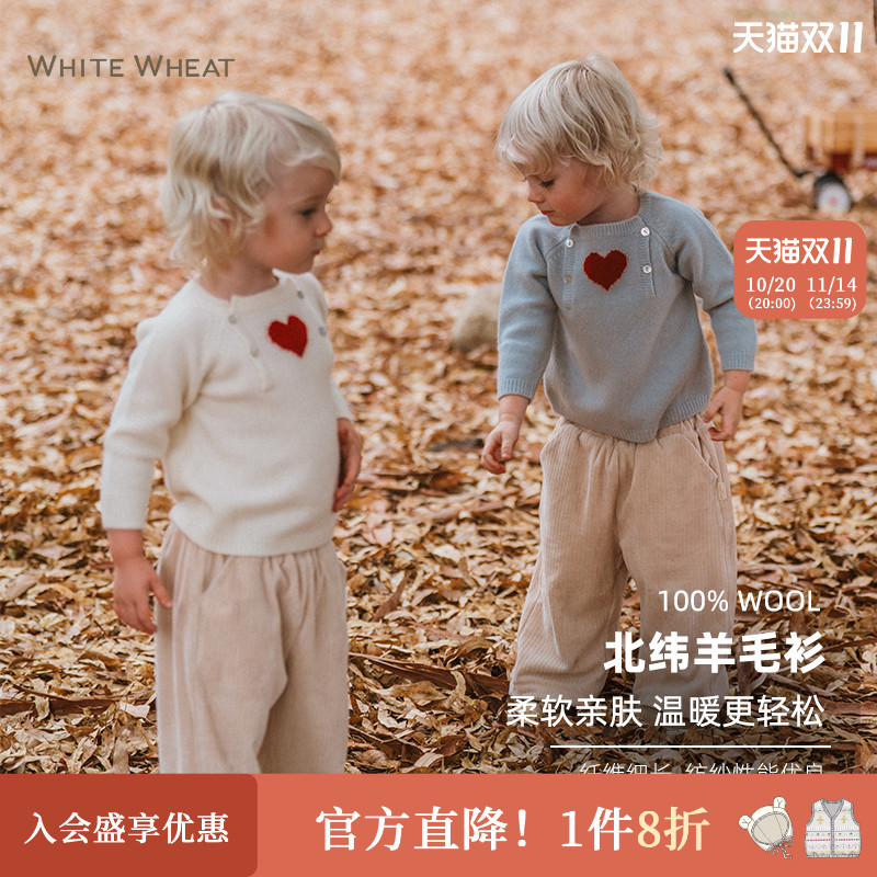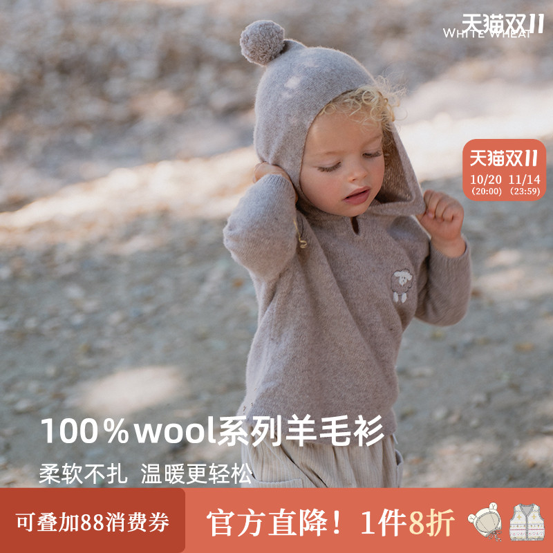 whitewheat男童2025新款毛衣女童秋冬季纯羊毛针织衫宝宝童装上衣