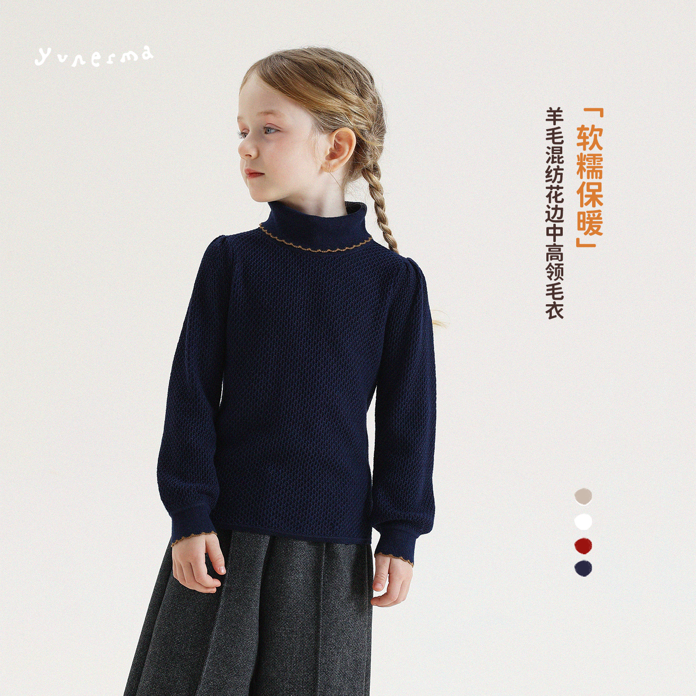 允儿妈女童冬季绵羊毛混纺半高领针织毛衣女孩秋冬打底衫儿童上衣