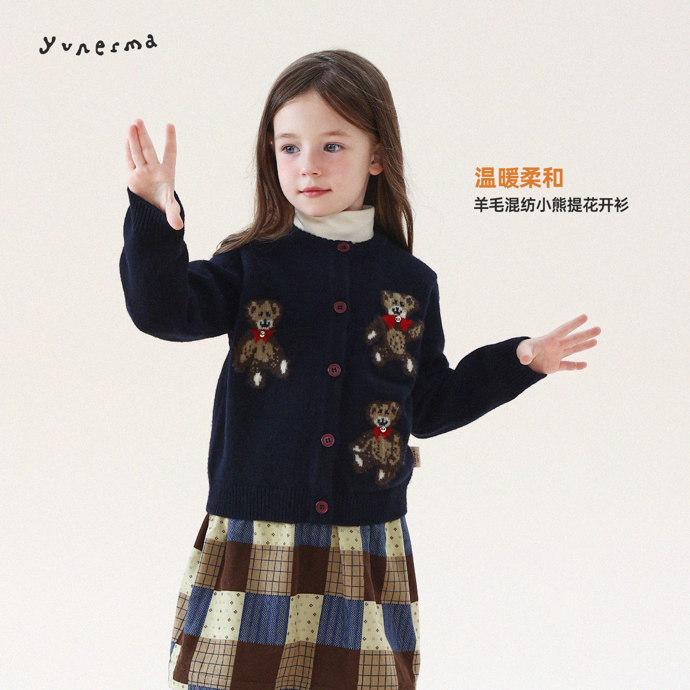 宝宝秋冬绵羊毛混纺小熊提花毛衣开衫允儿妈女童冬季针织衫外套潮