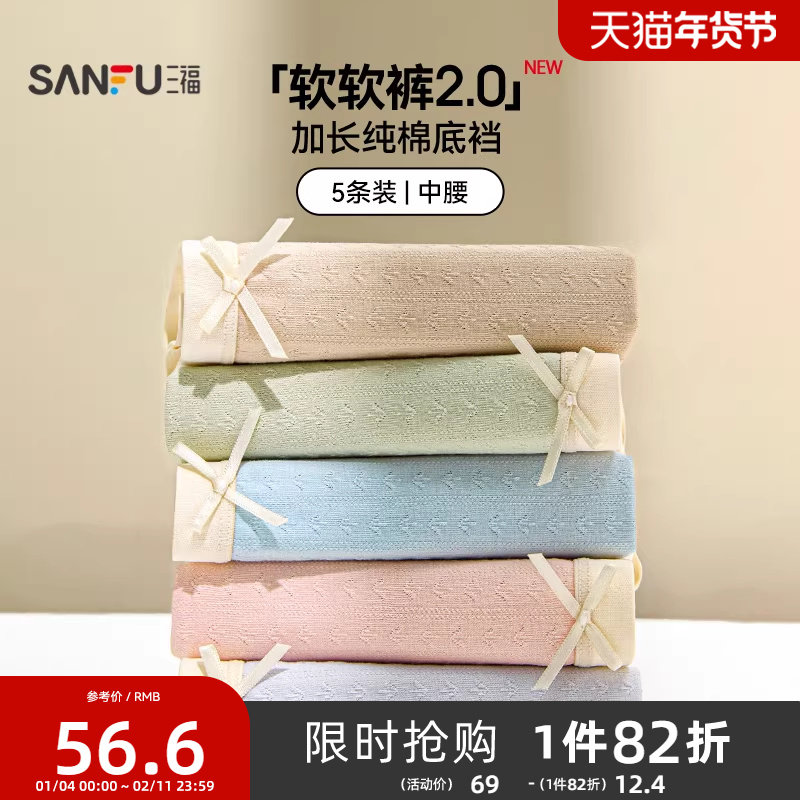 [5条]三枪内裤女生纯棉10A抗菌舒适无痕中腰内裤柔软透气裸感