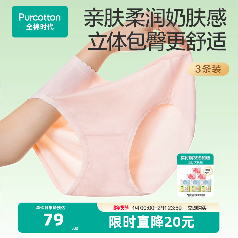 【百亿内裤】全棉时代女士内裤纯棉中腰轻薄舒适亲肤透气女生内裤