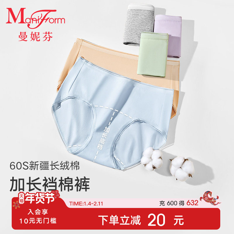 3条装曼妮芬女抗菌红色内裤纯棉内裆短裤舒适中腰三角裤女生底裤