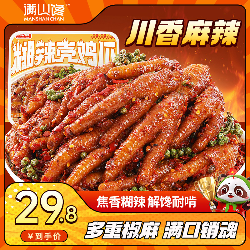 满山馋糊辣壳鸡爪四川特产鸡脚卤味凤爪夜宵解馋下酒休闲小吃零食