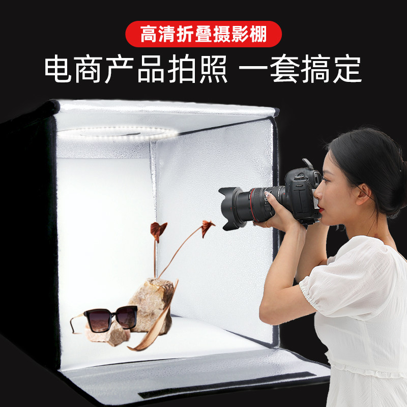摄影棚小型拍照道具简易折叠电商产品拍摄台静物照相led柔光灯箱