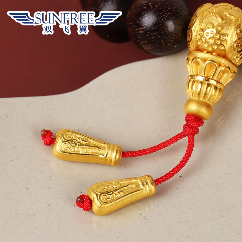 双飞翼 黄金六字真言三通佛塔做旧磨砂足金999转运珠佛珠配饰男女