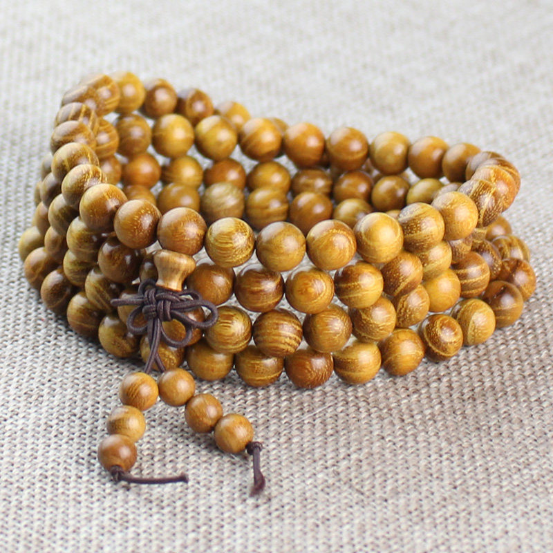 金丝檀木108颗手链6/8mm红木金丝楠黄金木佛珠手串沉香木质念珠
