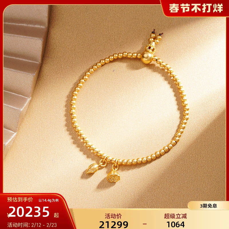 老庙黄金古韵金优品莲蓬古法金莲花和和美美佛珠手串手饰官方正品