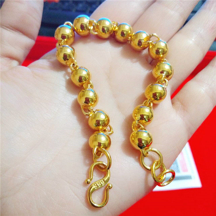 越南沙金手链男士仿黄金镀金女款马鞭佛珠圆珠链情侣久不掉色手链