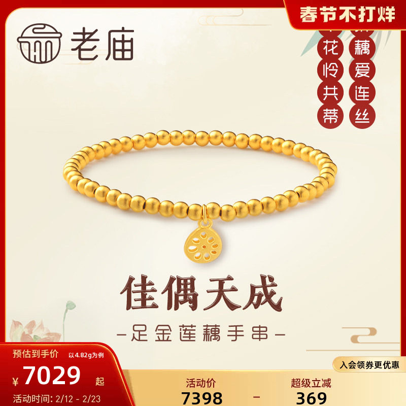 老庙黄金足金999古韵藕片佛珠手串好事连连佳偶天成礼物官方正品