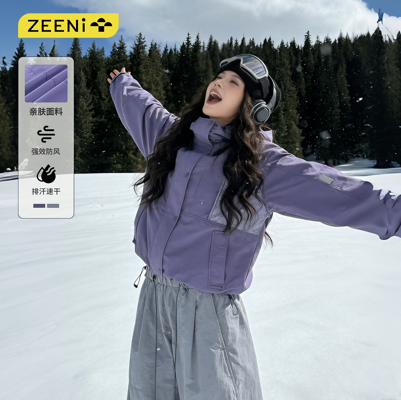 ZEENI 户外爬山运动撞色连帽冲锋衣外套女冬季防风防水休闲裤套装