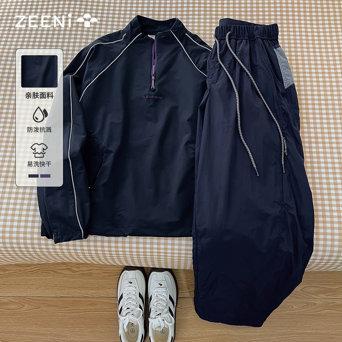 潮牌休闲侧杠冲锋衣套装2025春季新款外套工装裤宽松运动风两件套