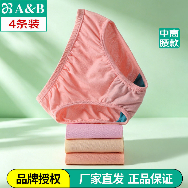 ab内衣【4条装】女纯棉抗菌中高腰中老年三角内裤旗舰店官网0282
