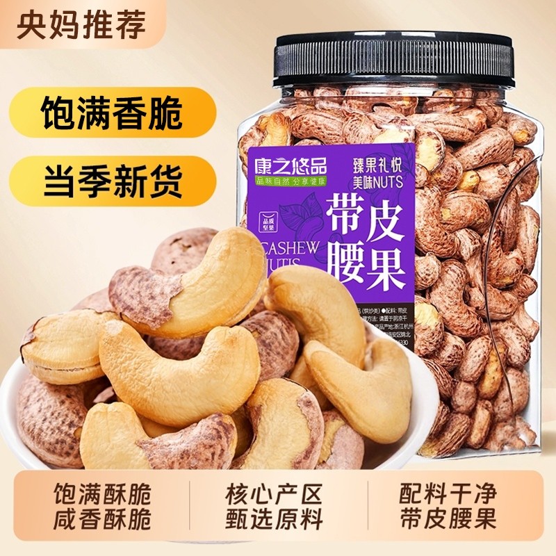紫皮大腰果仁盐焗500g越南原味熟特产紫皮带皮坚果零食新货充饥