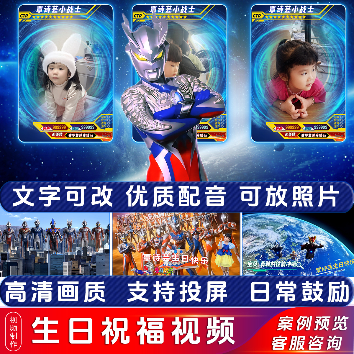 奥特曼祝福生日视频制作庆祝小朋友投屏庆生日常加油鼓励配音定制