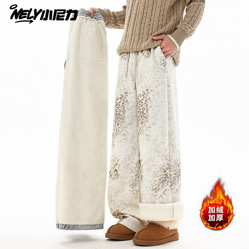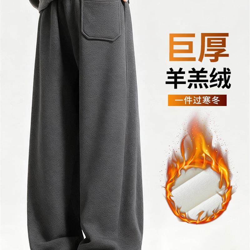 羊羔绒裤子男款冬季加绒休闲男裤男生加厚直筒裤男士阔腿运动卫裤