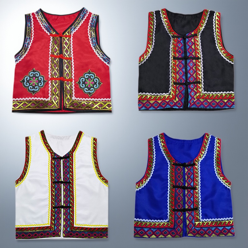 儿童民族舞蹈男女童马甲壮族苗族成人云南彝族马夹马褂坎肩演出服