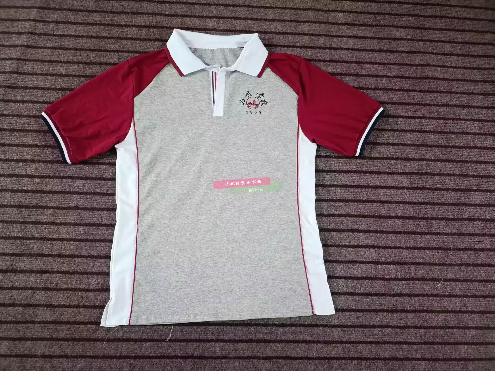 为明校服同款夏季纯棉短袖t恤白色酒红色polo衫可定制校服班服038