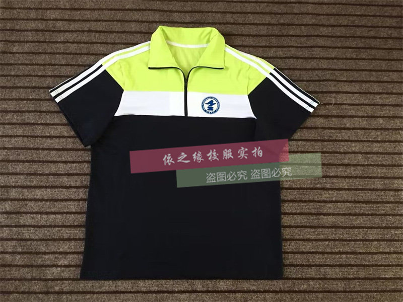 崇皇中学校服纯棉短袖T恤POLO衫白色拼藏青色上衣来图定制校班服