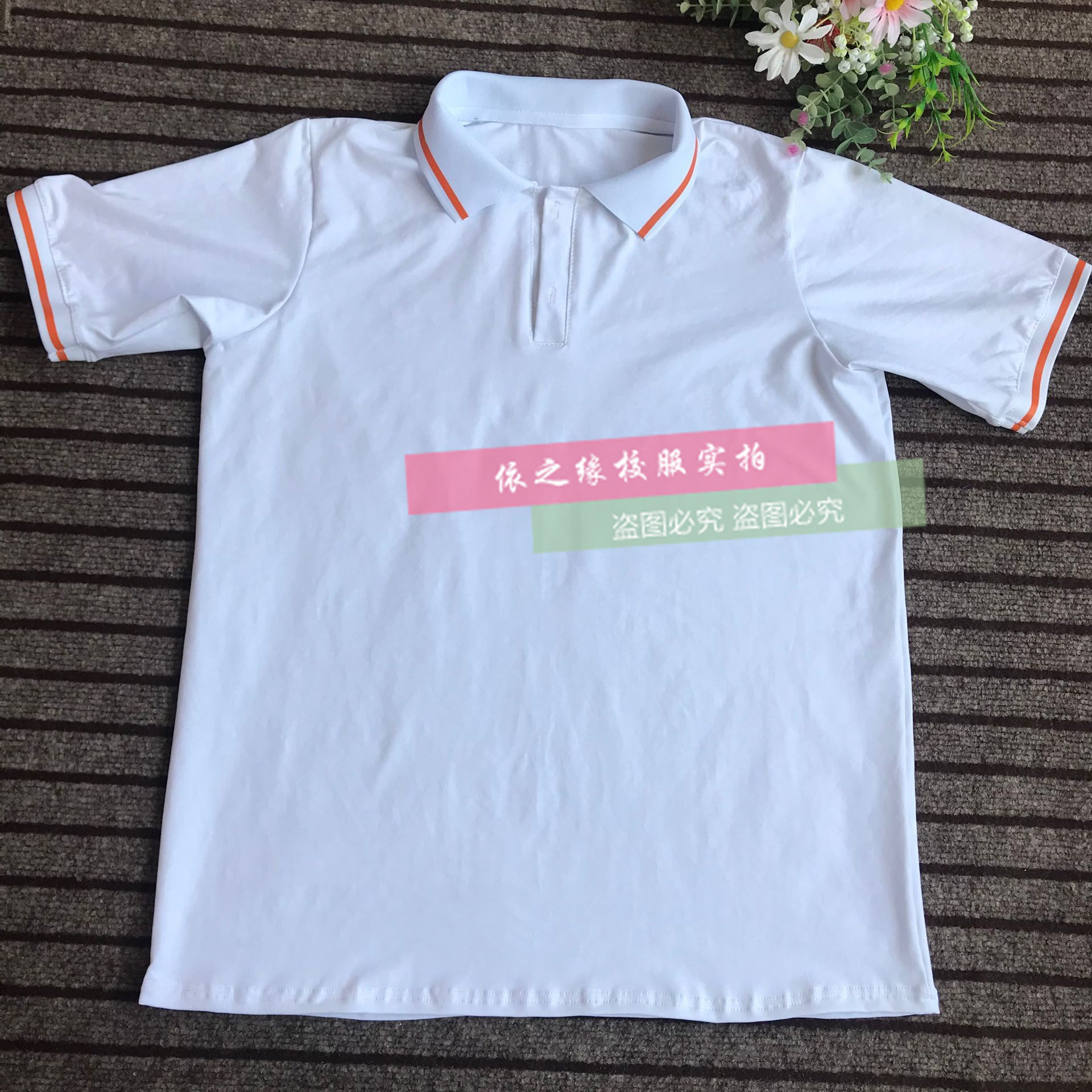 初高中小学校服夏纯棉短袖t恤polo衫上衣白色定制校服班服印字图2