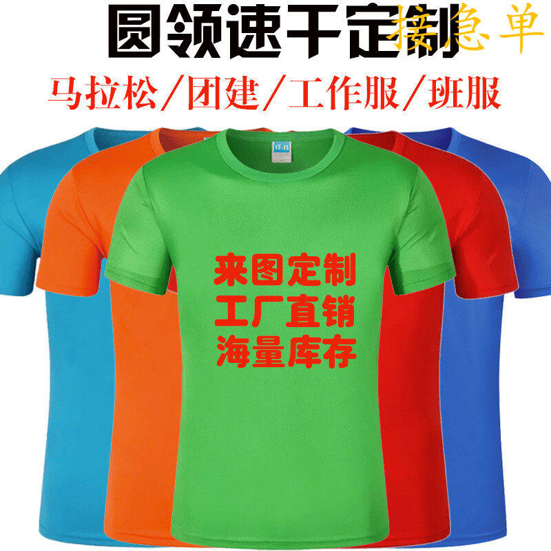 速干圆领短袖T恤广告衫文化衫马拉松团体活动班服工服制作印logo