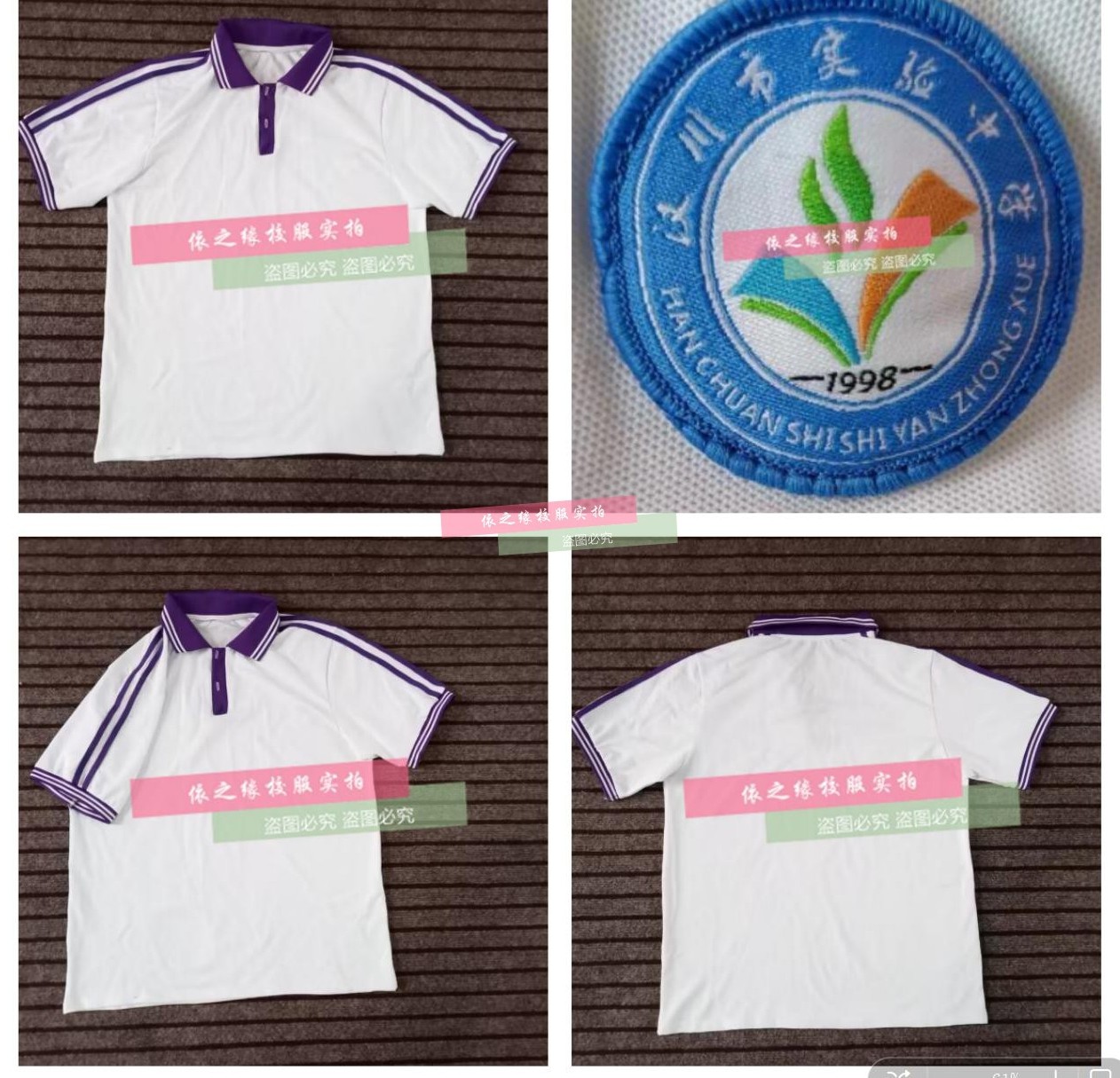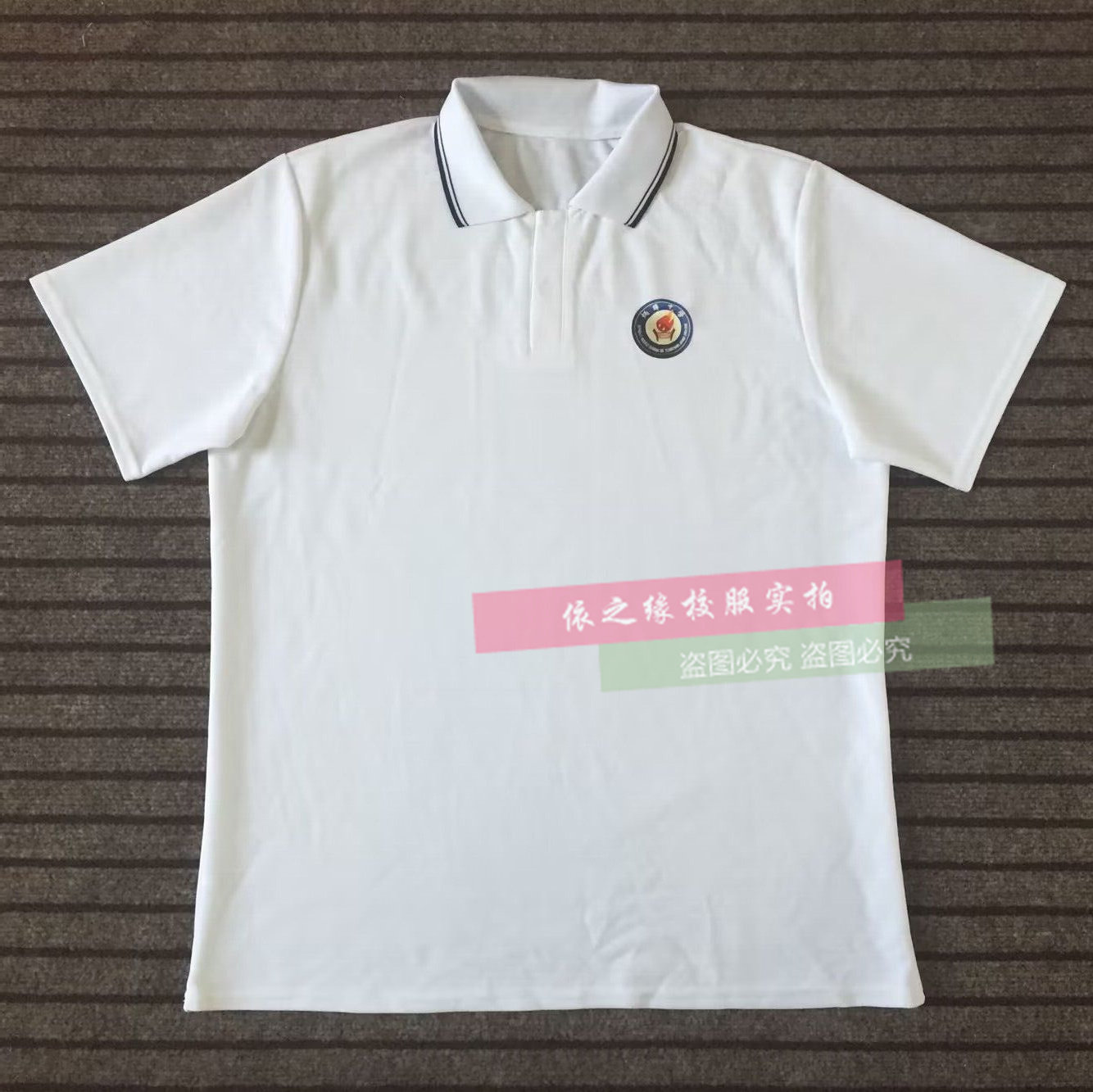 汉川市实验中学学校夏短袖纯棉t恤polo衫白色加校徽来图定制班服