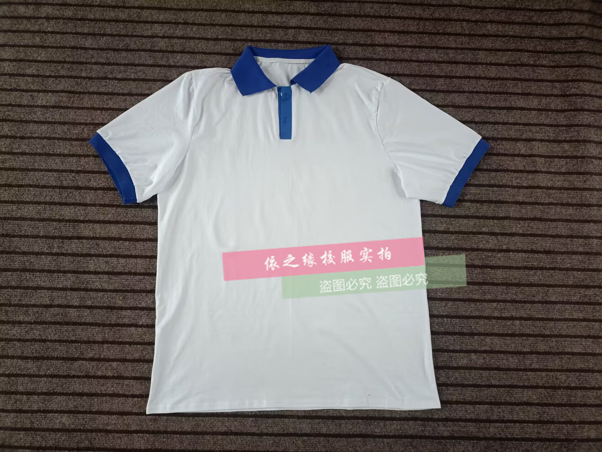 初高中小学校服夏纯棉短袖白色拼宝蓝色T恤POLO衫可定制班服校服1