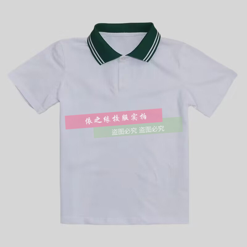 炳辉中学同款夏纯棉短袖t恤白色加校徽polo衫定制校服班服加校徽