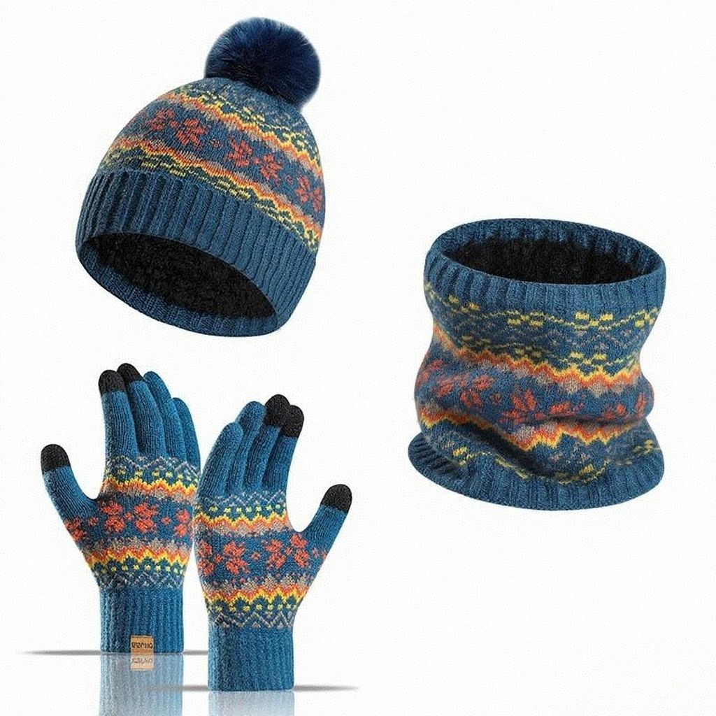 帽子围巾手套三件套装冬天加厚保暖防寒加绒针织女士雪花毛线帽男
