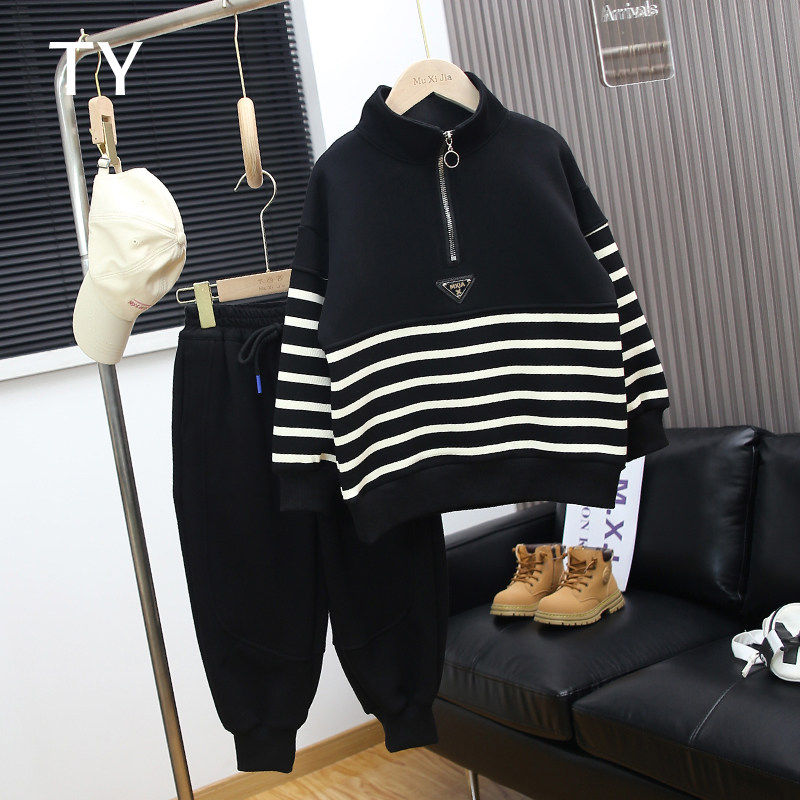 韩国TY童装潮牌男童卫衣秋冬冬季大儿童加绒条纹上衣男孩冬季保暖
