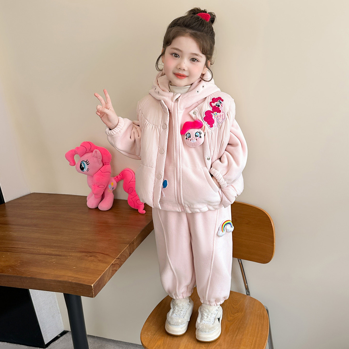 女童棉马甲套装冬装小马宝莉儿童卡通三件套宝宝加绒卫衣棉衣外套