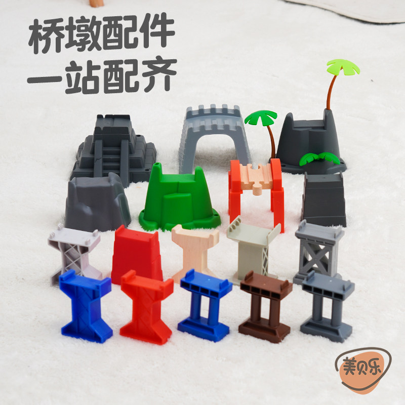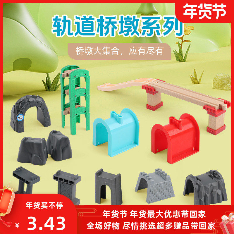 桥墩隧道木质轨道配件场景桥车库兼容磁性小火车米兔儿童木制玩具