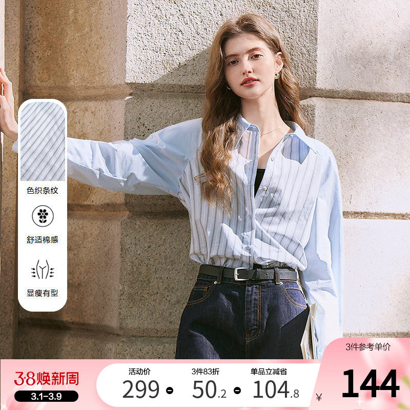betu百图宽松蓝白色条纹衬衫女长袖2026年春季新款职业通勤衬衣