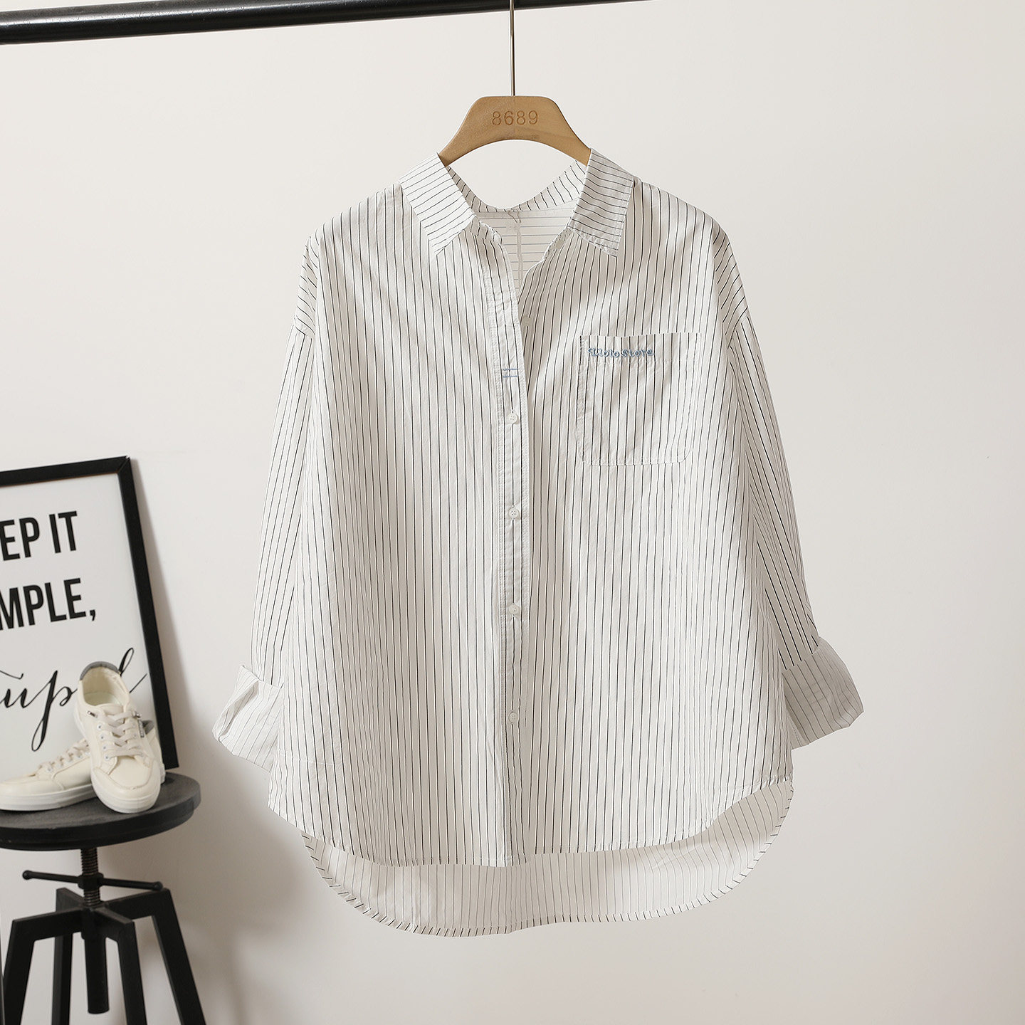 白色条纹衬衫女[第8名]